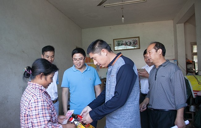 一同前往的還有岳西駐無錫流動(dòng)黨支部書記胡田廣、姚有志、副會(huì)長王軍、聶仲文、程天照、儲(chǔ)德鋒等。扶貧第一站來到了冶溪鎮(zhèn),冶溪鎮(zhèn)被稱之為“大別山中的小江南”風(fēng)景秀麗,魚米之鄉(xiāng)。但這里山區(qū)道路崎嶇,經(jīng)濟(jì)一直沒得到很好的發(fā)展,山區(qū)的貧苦戶生活還是很艱難,沒有收入。無錫勝維股份有限公司總經(jīng)理胡楊生在創(chuàng)業(yè)初期就曾說道:“努力讓我們勝維變得強(qiáng)大,讓更多的人得到勝維的幫助,感受到勝維的愛心。”在冶溪鎮(zhèn)相關(guān)領(lǐng)導(dǎo)的帶領(lǐng)下,共走訪了貧苦家庭,真切的感受山區(qū)貧困家庭生活不易。后在縣招商局領(lǐng)導(dǎo)的陪同下,驅(qū)車一百多公里山路前往主簿鎮(zhèn),在鎮(zhèn)領(lǐng)導(dǎo)的帶領(lǐng)下,看望了92歲的貧困女黨員儲(chǔ)德芬、胡楊生總經(jīng)理與老人親切交談、詳細(xì)詢問了老人的身體和生活情況、并帶給老人急需的生活用品、老黨員感動(dòng)不已、一度熱淚盈眶。此次分別向20戶貧困家庭共捐贈(zèng)2萬元人民幣,善款來源岳西在無錫老鄉(xiāng)自發(fā)籌集,代表岳西在無錫老鄉(xiāng)的一片愛心,讓愛心在這片紅色土地上傳遞,并告訴他們貧困不怕,要堅(jiān)信生活會(huì)更加美好的,努力學(xué)習(xí)、勤勞致富。