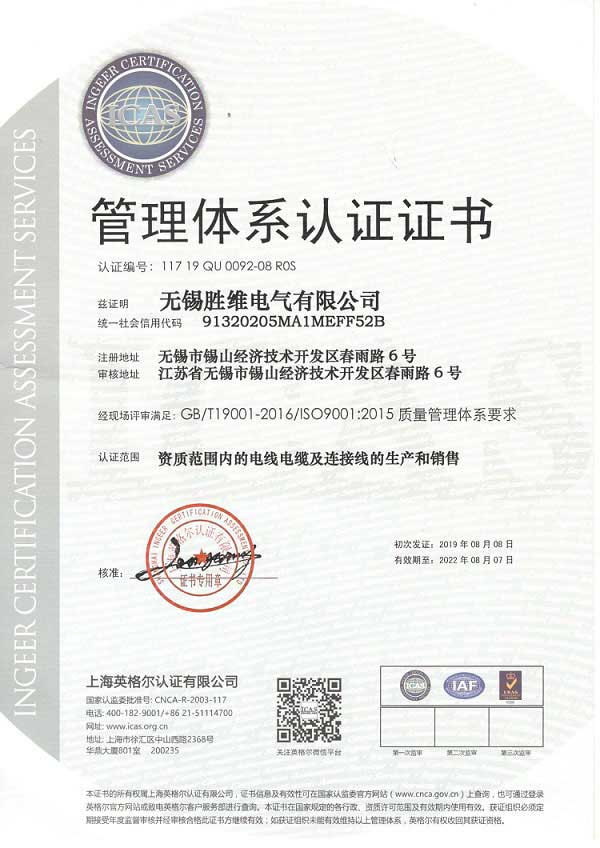 勝維質(zhì)量體系證書